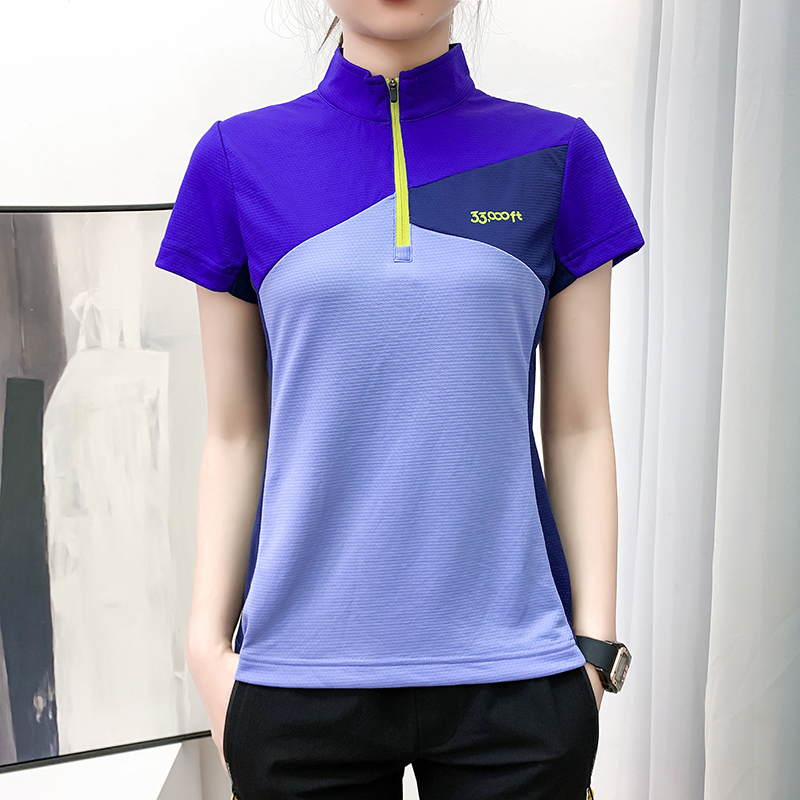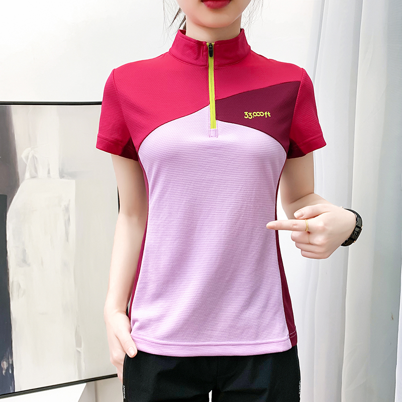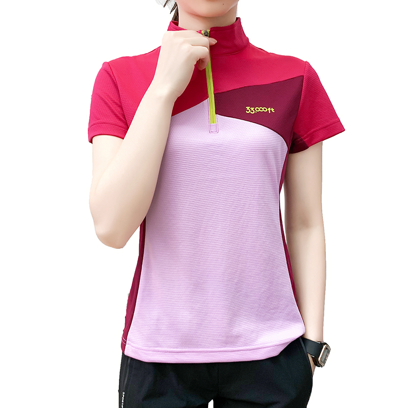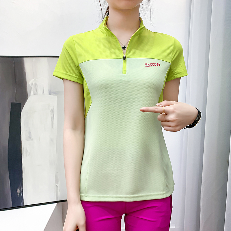 Outdoor new women's stand-up collar elastic short-sleeved quick-drying T-shirt breathable sweat-absorbing sunscreen quick-drying clothes hiking