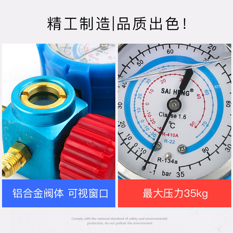 Household Fixed Frequency R22 Single Meter Set R22 R410 Visual Single Meter Cover Automotive R134 Single Meter Set R22R410 Visual Single Meter Sleeve R22R410 Viewable Sleeve with Safety Valve