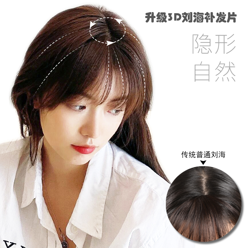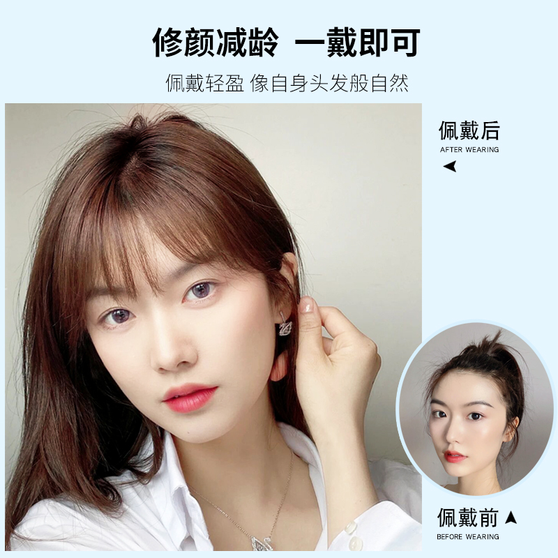Fake bangs female natural forehead bangs on the top of the head light and thin hair piece fluffy eight-character air needle seamless wig piece