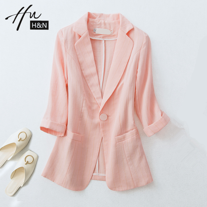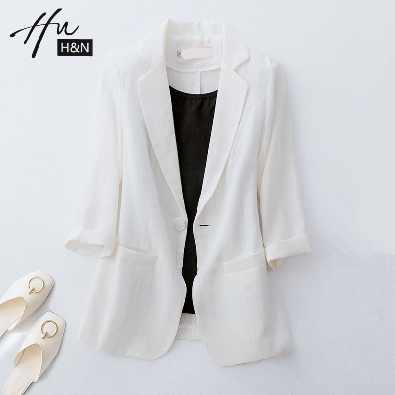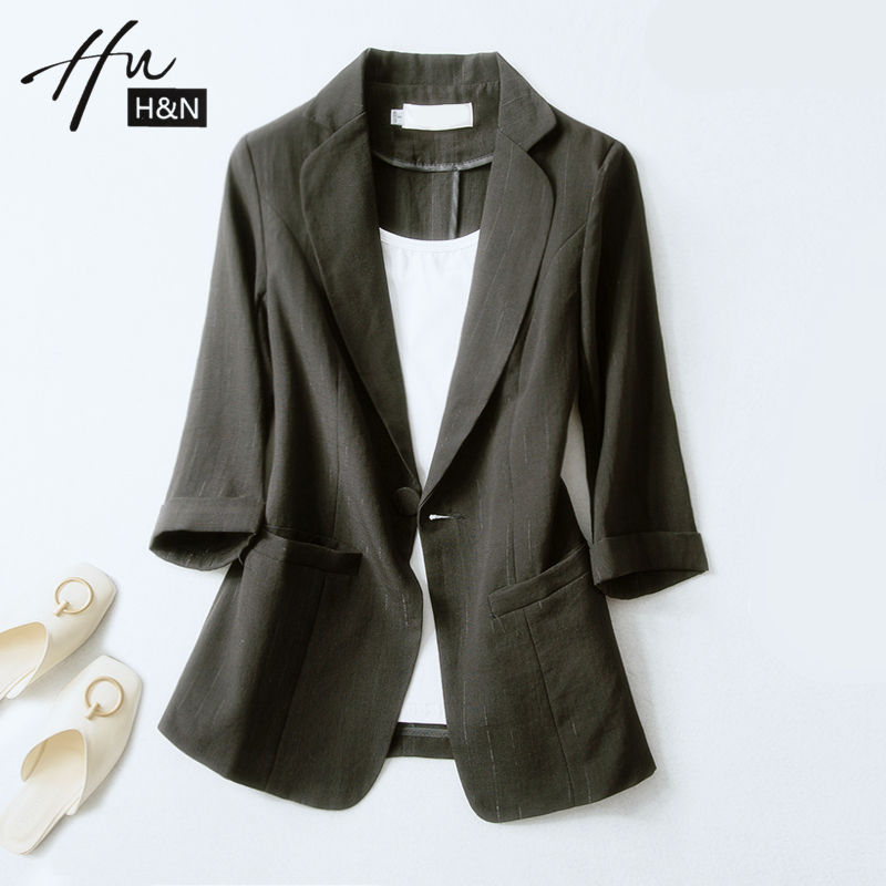 Linen suit jacket Women's thin section 2022 Summer new 70% sleeves small subshort streaks cotton linen Little Western suit