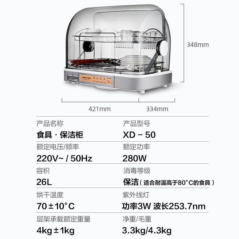 Golden stove XD-50 small desktop disinfection cupboard home desktop tea set ultraviolet disinfection cabinet gold stove series