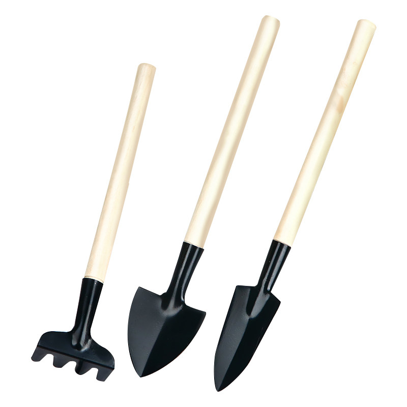 Pointed shovel (mini small number) wide head shovel (mini small number) rake (mini small number) gardening three sets (mini trumpet)
