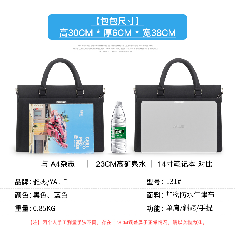 Jaj 2021 new men's business briefcase 14 inch computer A4 oxford cloth waterproof handbag official bag