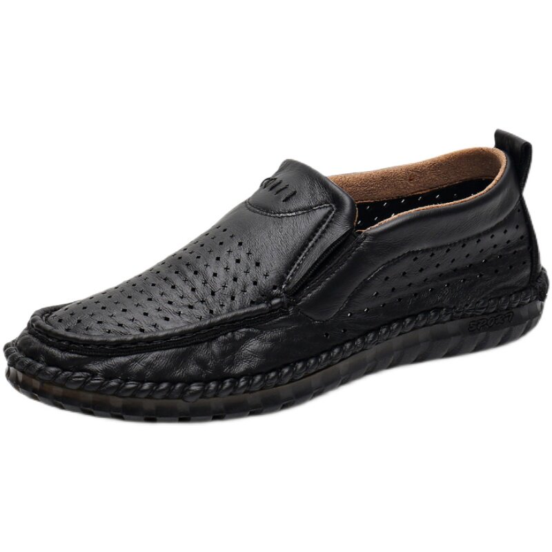 Old Beijing Cloth Shoes Men's Tennis Shoes Summer Men Black Imitation Leather Hollow Breathable Anti-Slip Bull Gluten Bottom Middle Aged Sandals