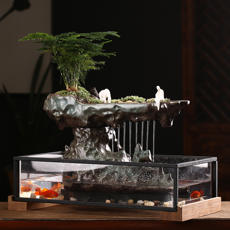Water Curtain Cave Sky Flowing Water Ornament Fountain Landscape Chinese Desktop Fish Tank Feng Shui Circulating Water Lucky Opening Gift