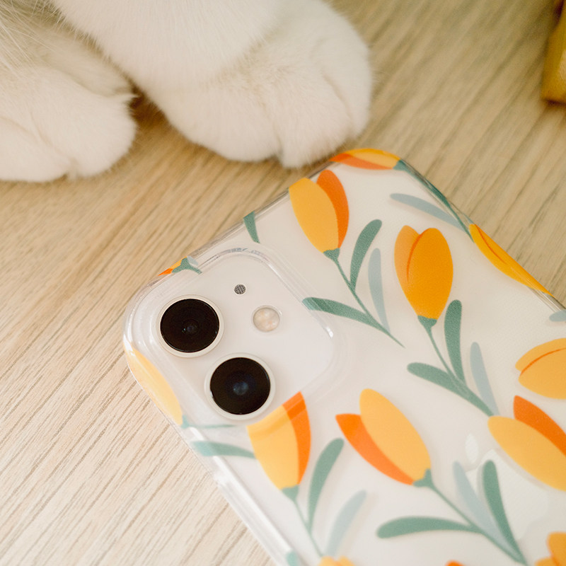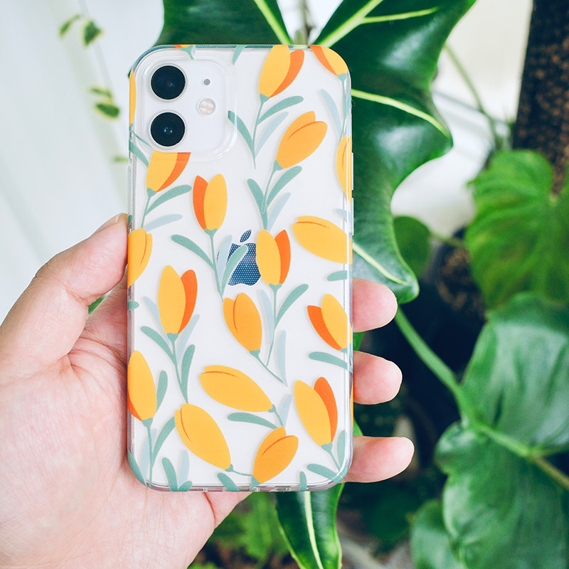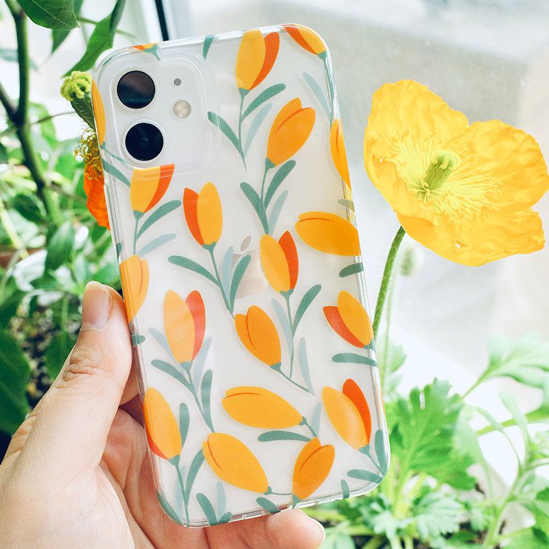Orange star high photo transparent tulip suitable for apple 13promax flowers mobile phone protective shell mesh red iphone full package