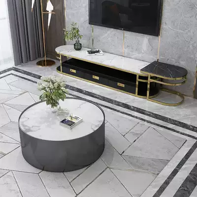 Coffee table round simple modern living room rock plate stainless steel marble black titanium metal minimalist style garden coffee table