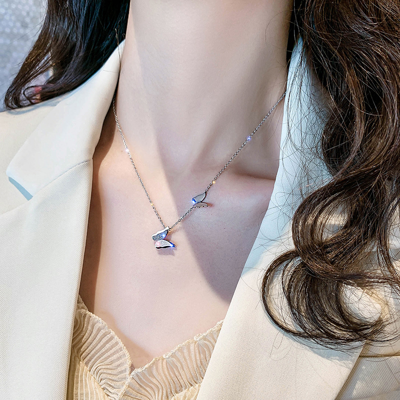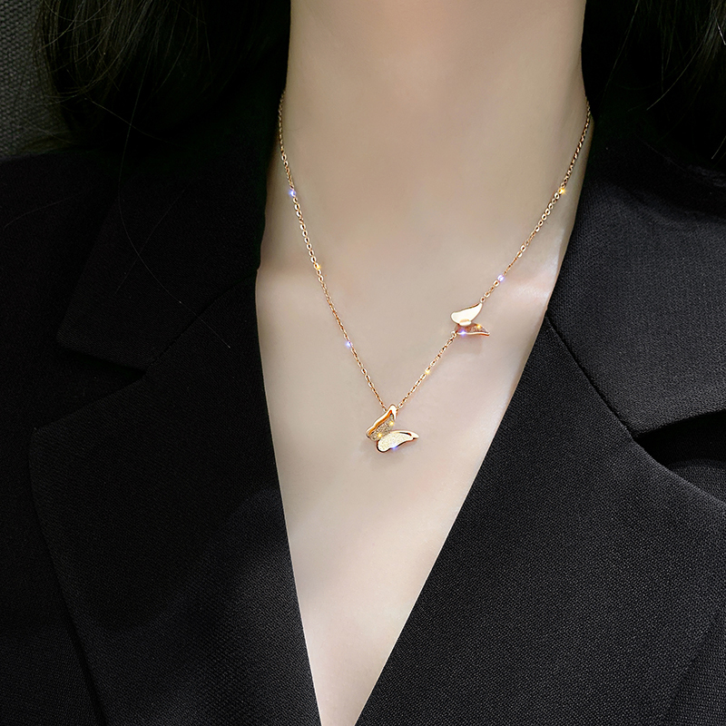 Butterfly necklace women's sterling silver niche design sense light luxury collarbone chain 2021 new non-fading accessory necklace