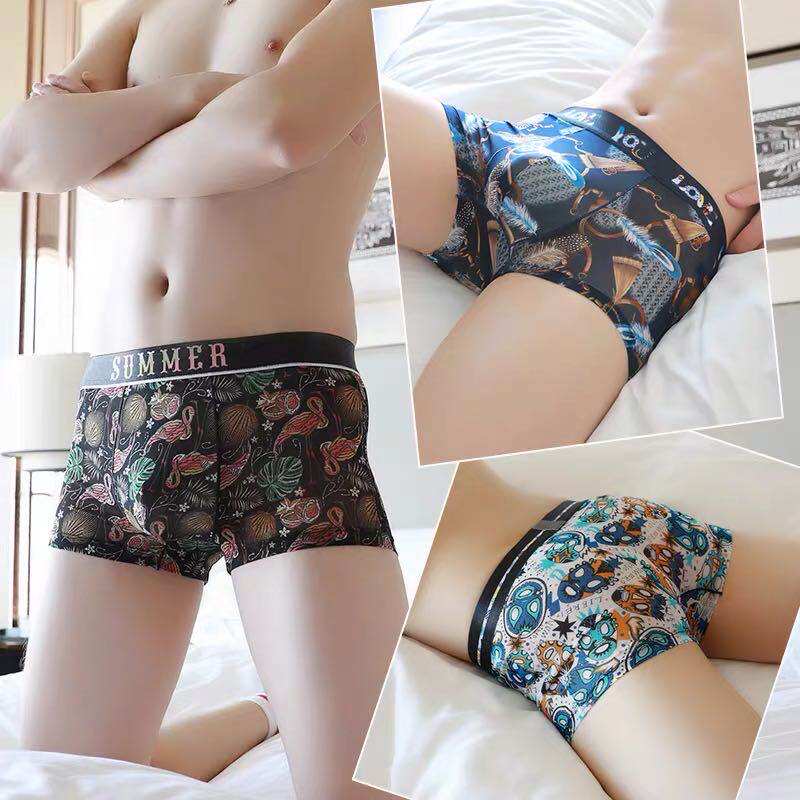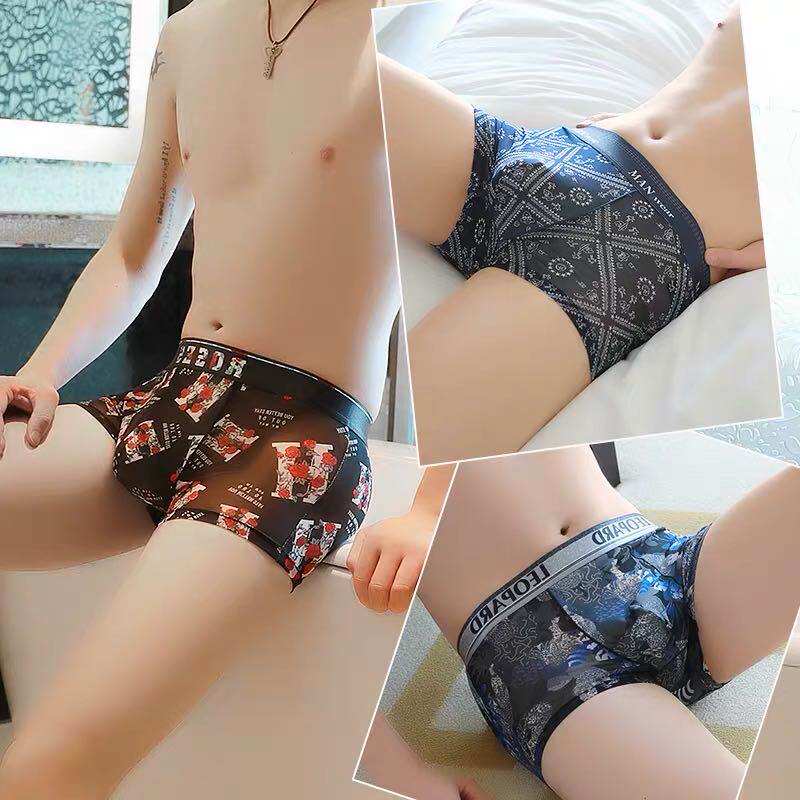 Tide brand underwear men's transparent sexy ultra-thin personality trend men's underwear summer ice silk breathable boxers lace