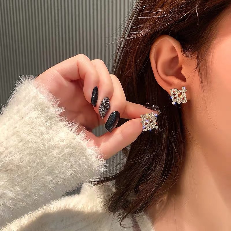 Japan and South Korea small trend to get rich and prosperous earrings temperament wild super flash exquisite ear needle Korean fashion earrings