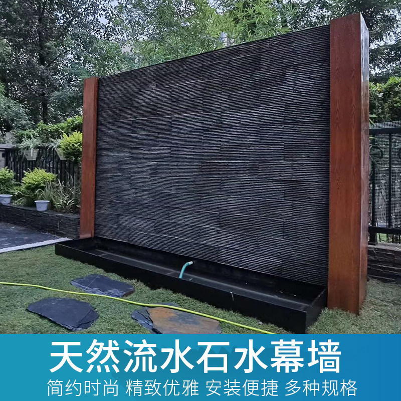 Culture Stone Water Curtain Wall Flowing Water Curtain Stones Imitation Natural Green Stone Garden Patio Courtyard Water Board Pool Background Outer Wall Brick