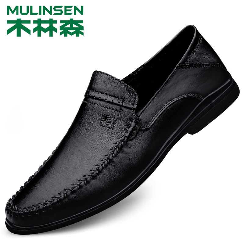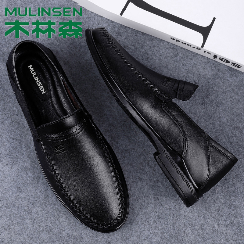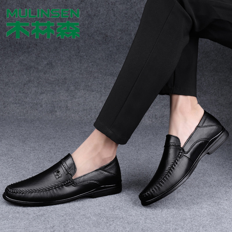 Wood Linson Leather Leather Leather Shoes Spring Business Casual Shoes Breathable a Foot Pedal Middle-aged Dad Shoes New Pint Shoes Man