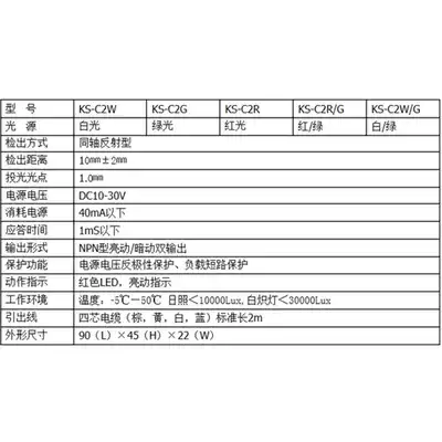 KS-C2W white light KS-C2G green light KS-C2R red light KC-C2B blue light two-color bargaining remarks KC-C2 remarks color Other specifications contact customer service