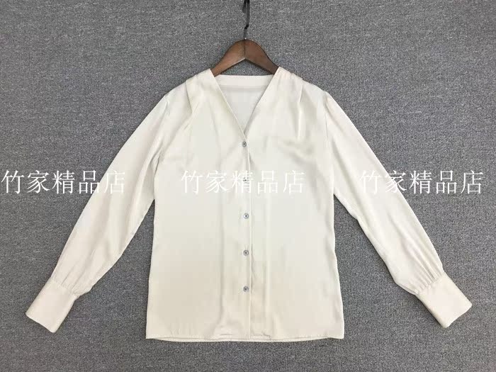 So charming Elegant and feminine Beautiful to wear commuter V-neck champagne color buttoned shirt