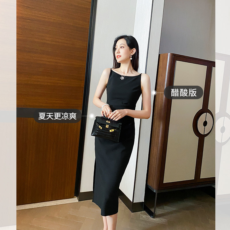 Summer dress new style Hepburn Herbene style High feeling black lined with acetate Sling Small Black Dress