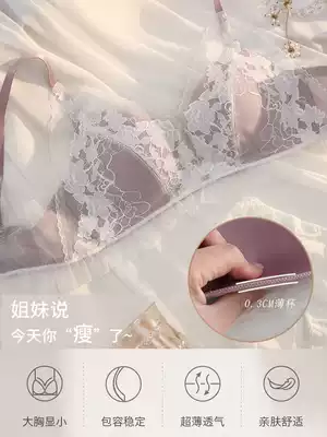 Embroidered thin underwear women gather and collect breasts, big breasts, small, no steel rings, sexy lace, latex underwear set