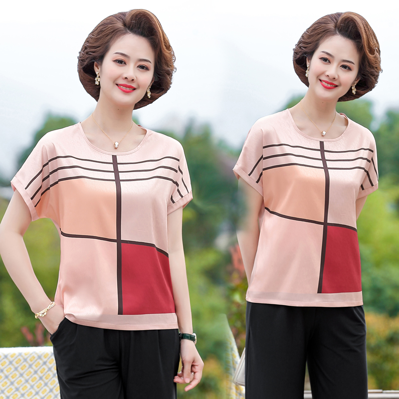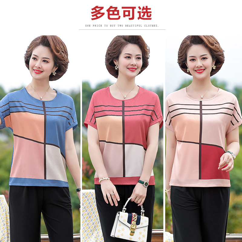 Mid-aged women's clothing short sleeves T-shirt Mom loaded with middle age large size and summer clothes Loose Foreign Pie Cardians clothes Grandma clothes