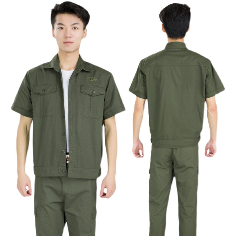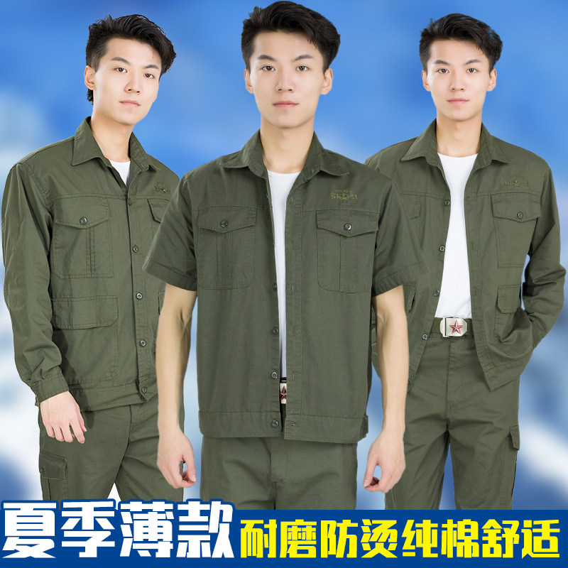 Summer workwear suit men's thin section long sleeve breathable half sleeve abrasion resistant pure cotton electro-welded short sleeve lagoon suit customizable-Taobao
