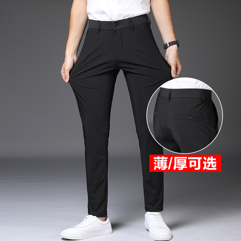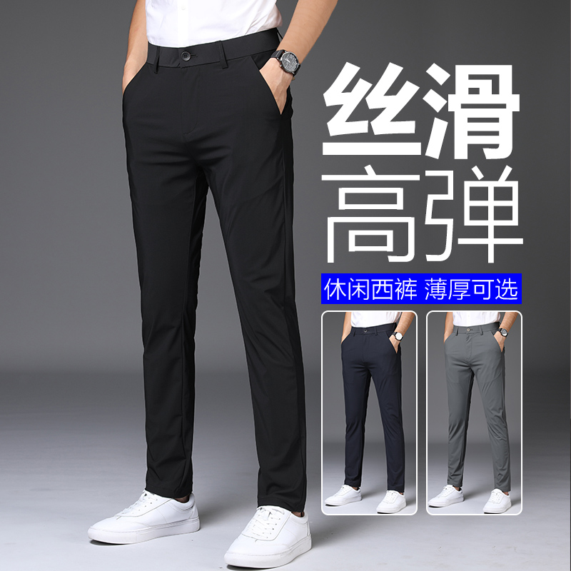 Summer coveted ice silk Western pants for men trendy slim fit tapered long pants Chauffes high-bounty little feet casual pants-Taobao
