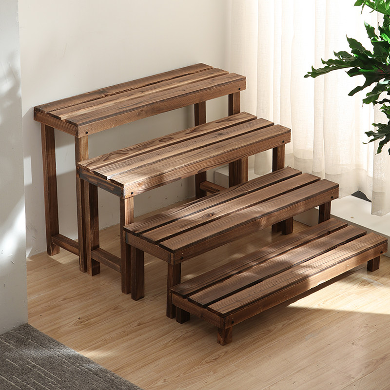 Carbonized anti-corrosion solid wood flower shelf balcony outdoor multi-layer ladder flower a few feet step stool succulent golden ge flower pot rack