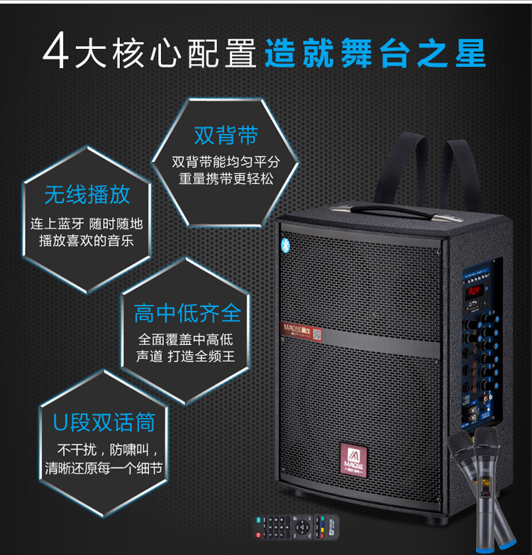 Manlon Trio Frequency Division Outdoor Shoulder Bag Sound K Song Singing High Power Volume Bluetooth Portable Square Dance Speaker