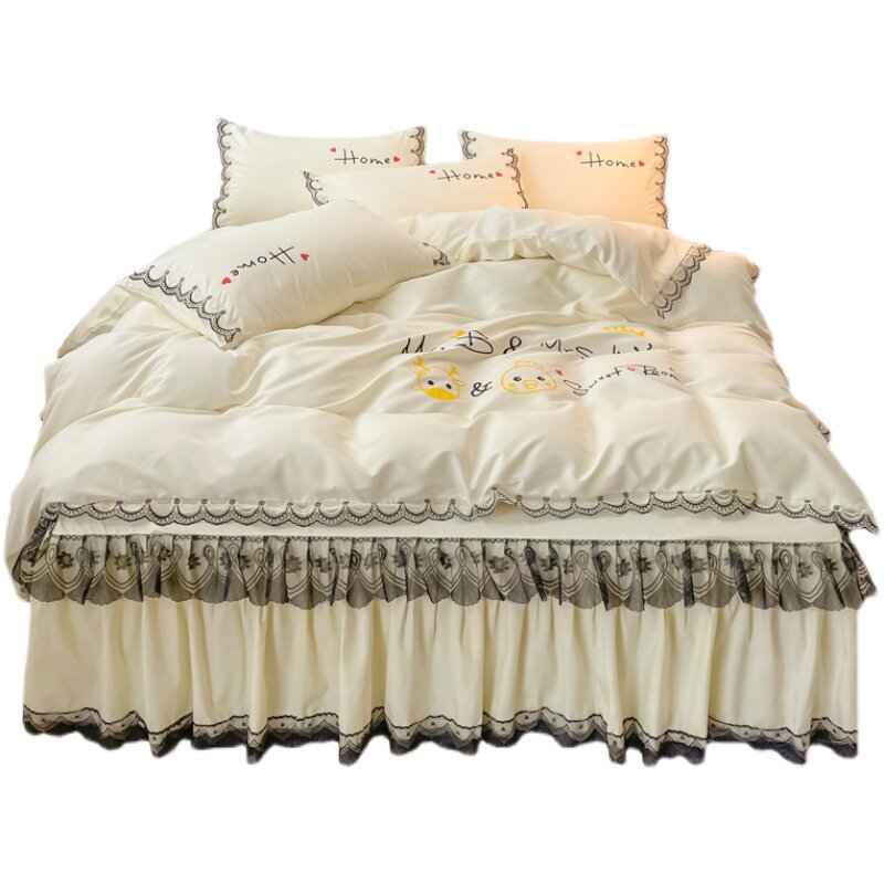 Summer cute pet bed podium four-piece cotton cotton quilt cover girl heart princess style bed cover simple bedding