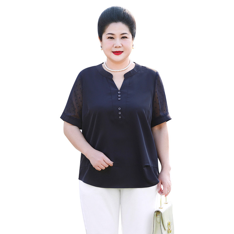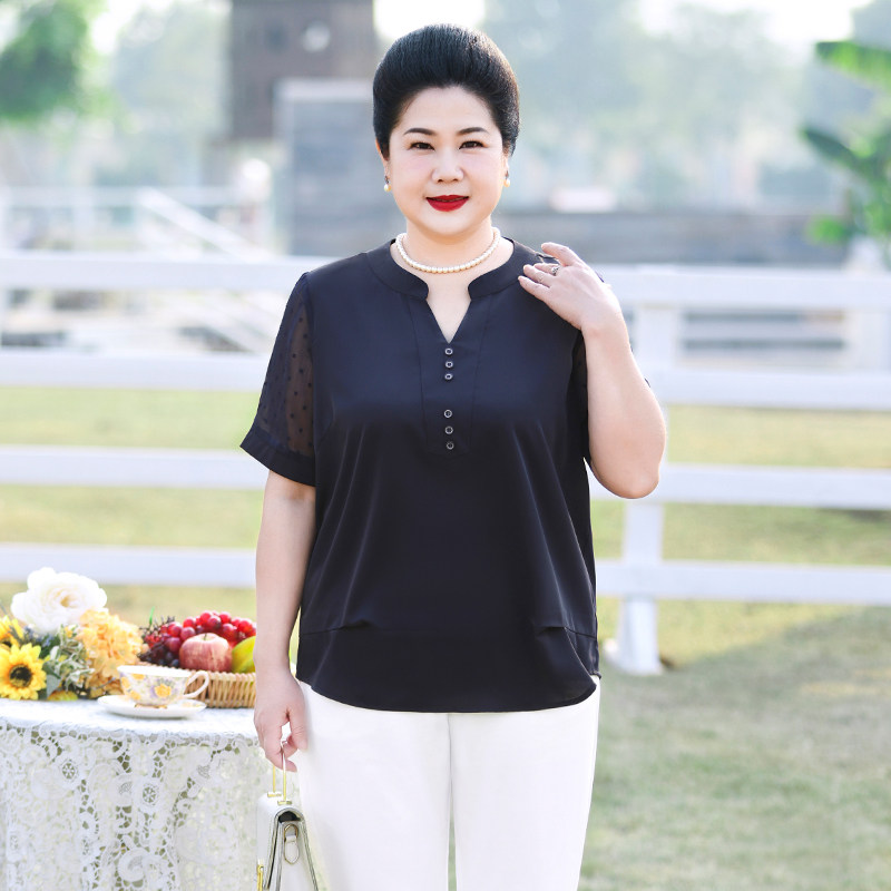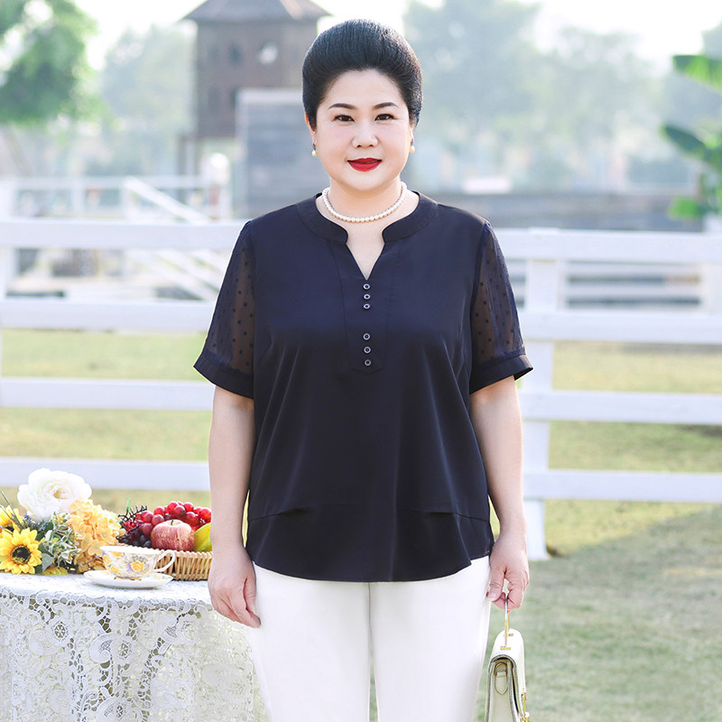 Fat mom summer dress Western style small shirt middle-aged large size women's top loose thin section chiffon short-sleeved shirt 200 catties