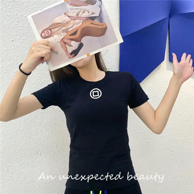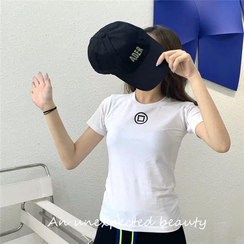 South Korea kimhekim new coins copper coins logo printing slim top short-sleeved T-shirt women's tide
