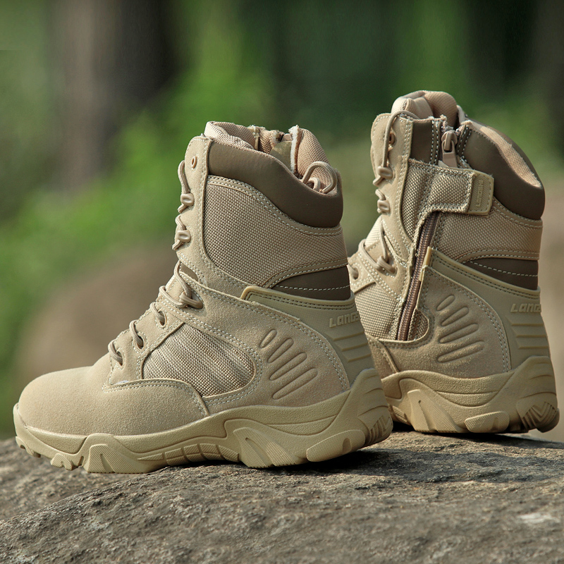 High-cylinder waterproof desert combat boots Men's winter ultra light work training boots wear resistant anti-slip tactical boots Black Army fan shoes