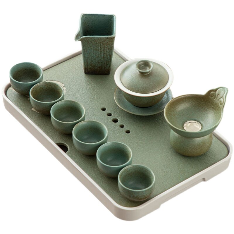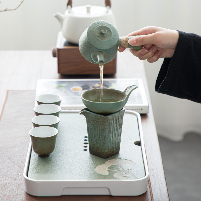 Kiln glazed ceramic household living room Kung Fu tea set simple Japanese teapot teacup small set water storage tea tray set