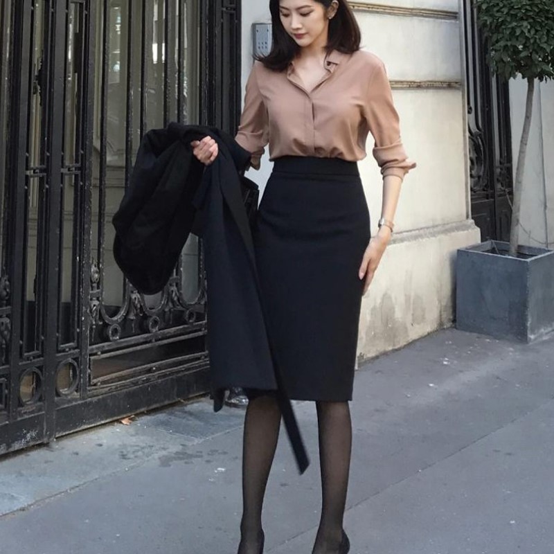 Black career dress 2023 Spring and summer new skirt high waist bag hips and cross a step dress