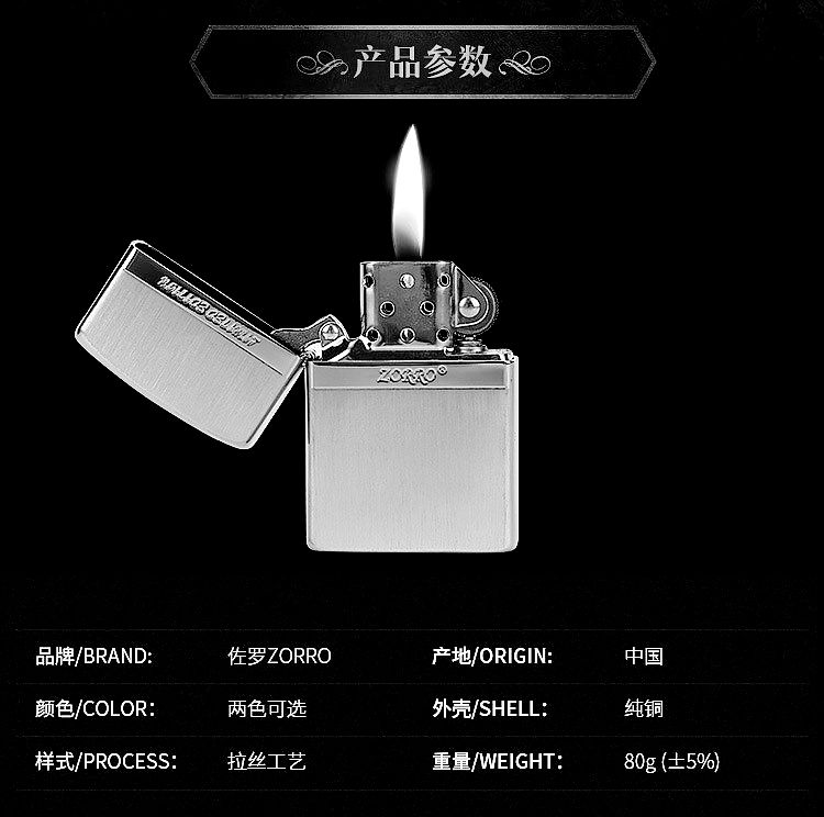 ZORRO Zorro, Hong Kong, wind - resistant coal - oil lighter drawing retro - shaft grinding wheel lighter Park silver