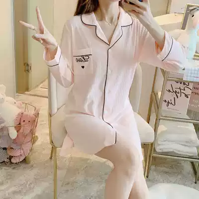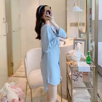Spring and autumn pajamas women cotton loose long sleeve nightgown thin summer solid color simple autumn and winter can be worn outside home clothes