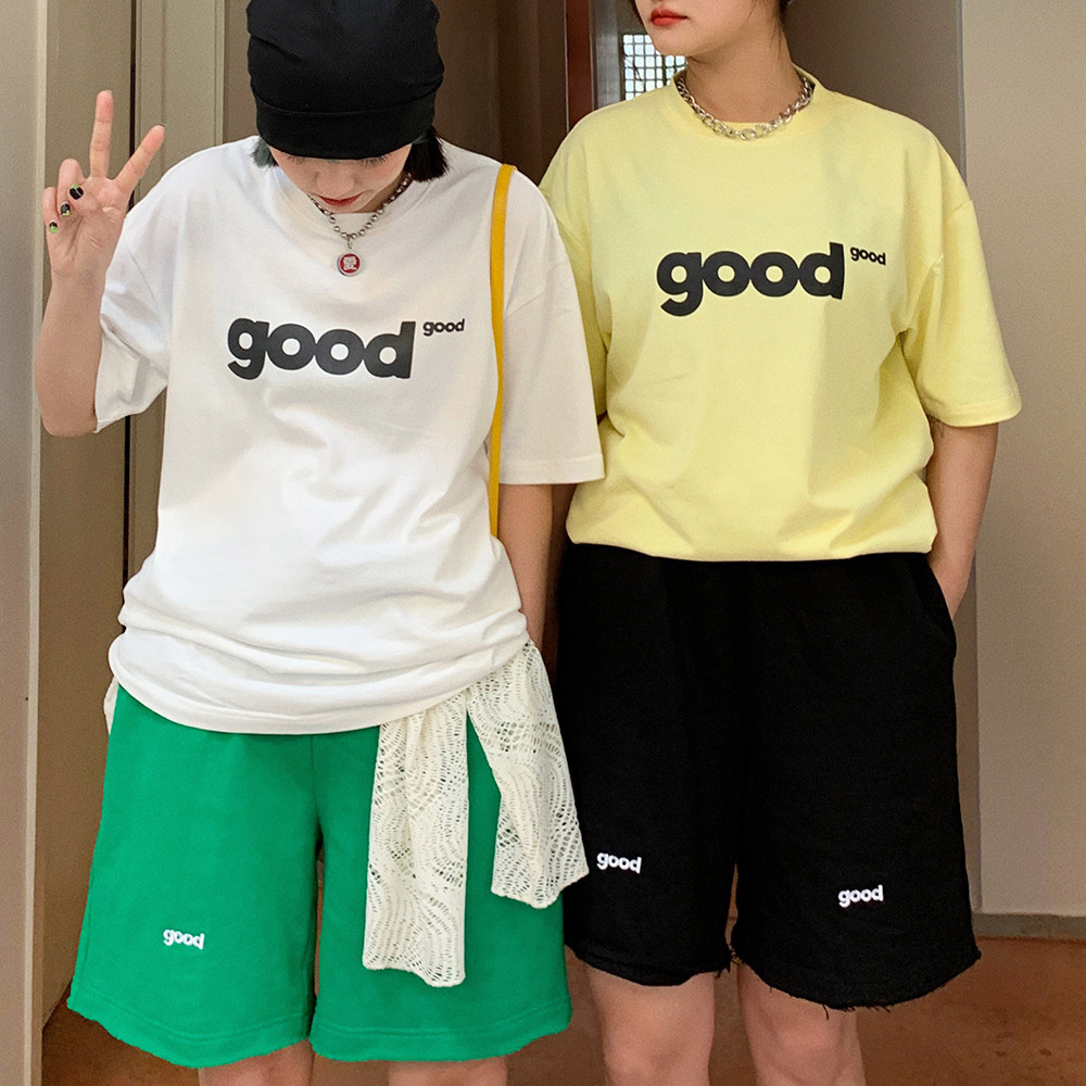 Nice store MeihaoStore four color good printed pure cotton short sleeve macaron matching color T-shirt lovers