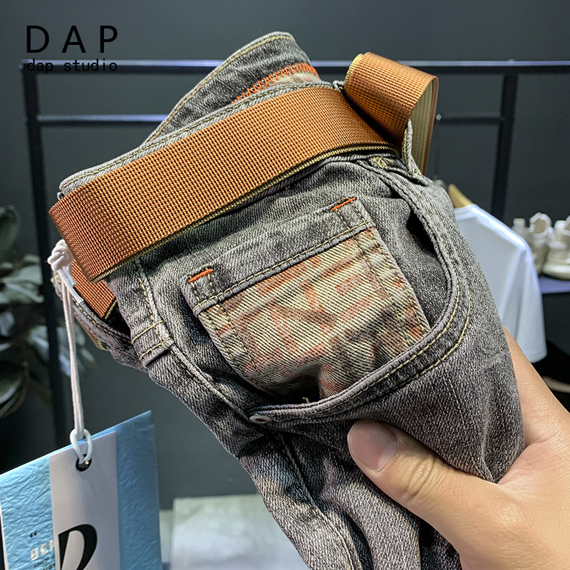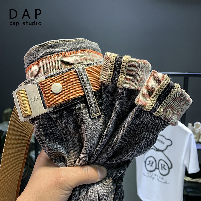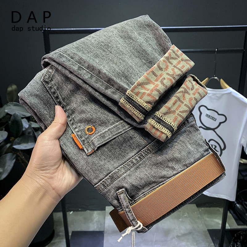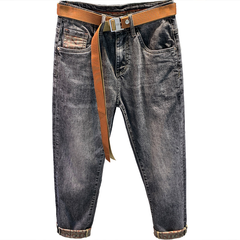 Jeans men's 2022 new autumn and winter thick section trendy brand nine points loose elastic ruffian handsome Korean style trendy pants for men