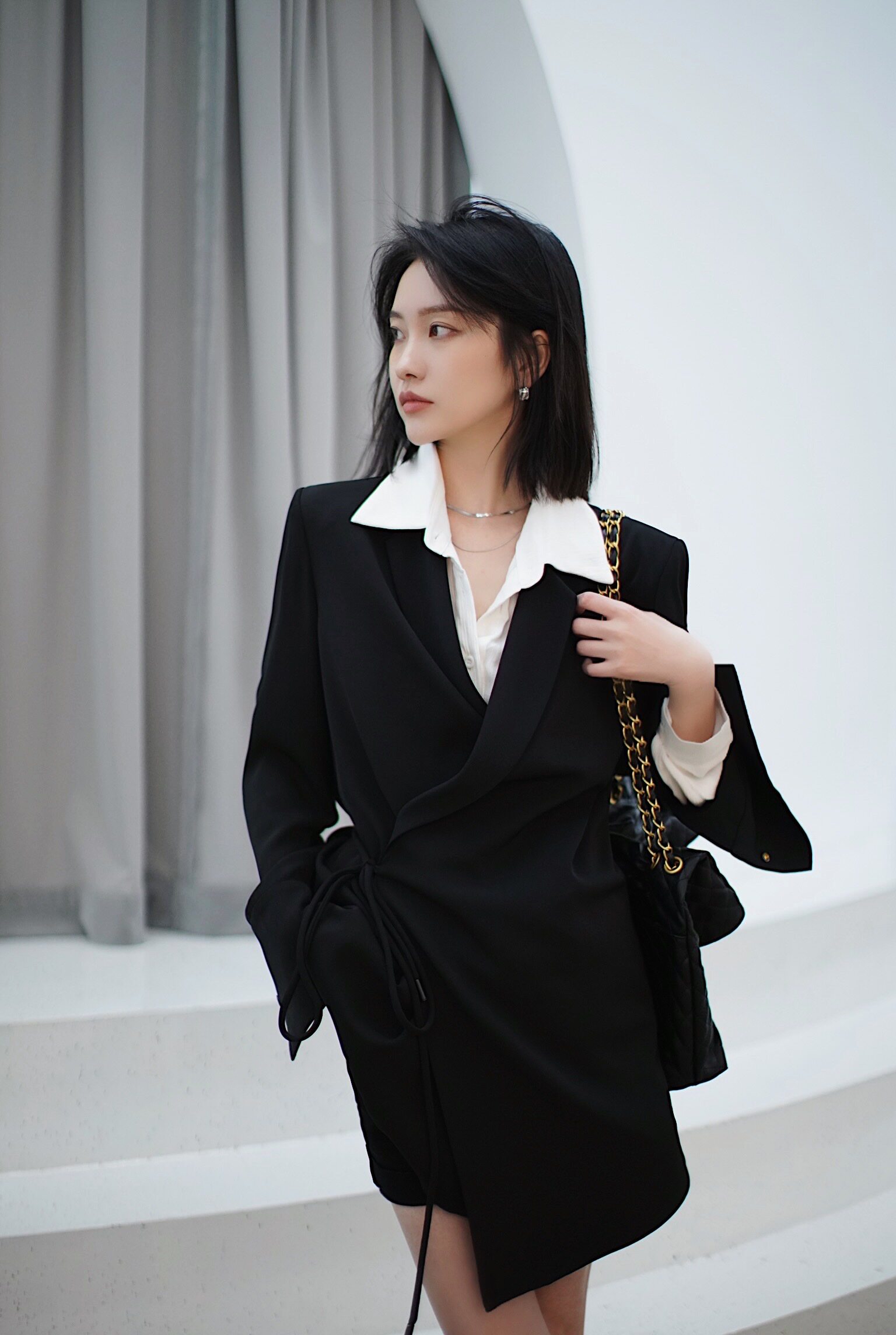 Liseyen stacked collar irregular suit skirt women's 2021 summer dress waist thin temperament design sense