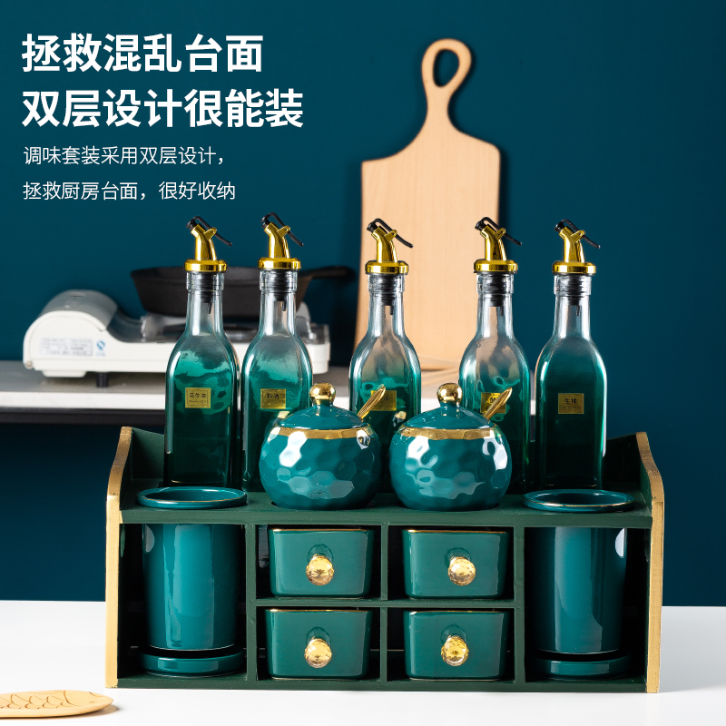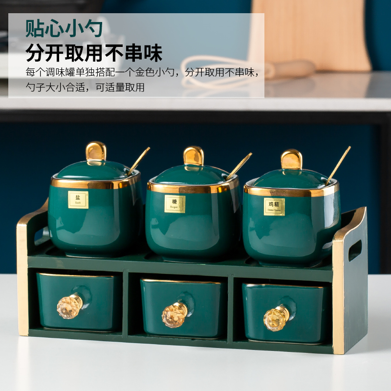 Sakura Qi seasoning combination set salt monosodium glutamate seasoning box kitchen seasoning bottle pot ceramic seasoning pot sugar pot