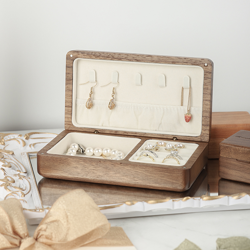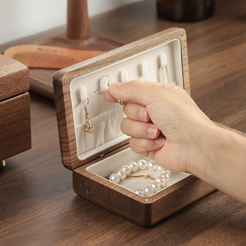 Wooden jewelry box storage box antioxidant small delicate portable high-end earring necklace stud earring ring hand jewelry box