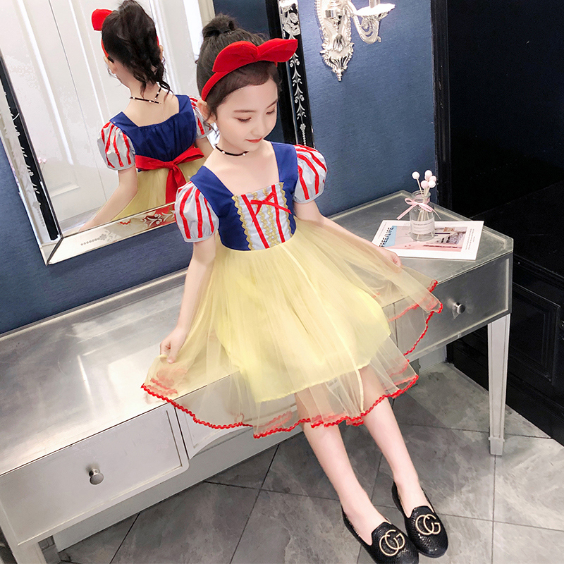 Girls summer dress 2021 New Korean version of foreign style princess skirt little girl Net red out puffy gauze dress