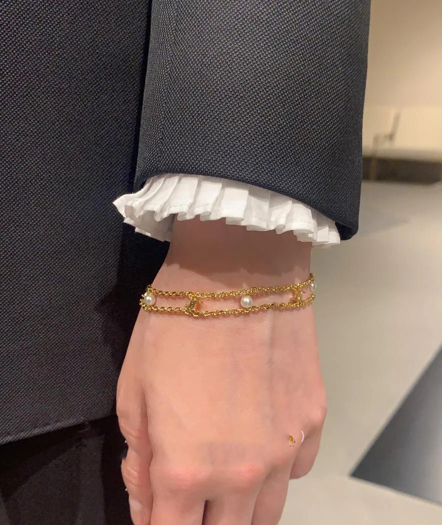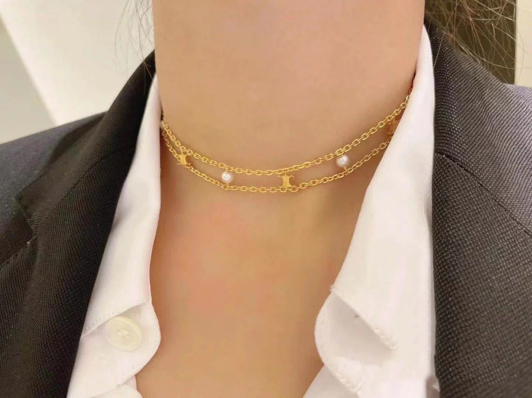 Legal Temperament Kyuck Door Pearl Double Layer Short Money Chain Choker Lock Bone Chain Hand Condensed Brass Plated Real Gold