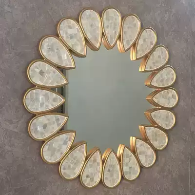 Nordic shell art cosmetic mirror bedroom cosmetic mirror light luxury porch wall mirror round bathroom mirror decorative mirror