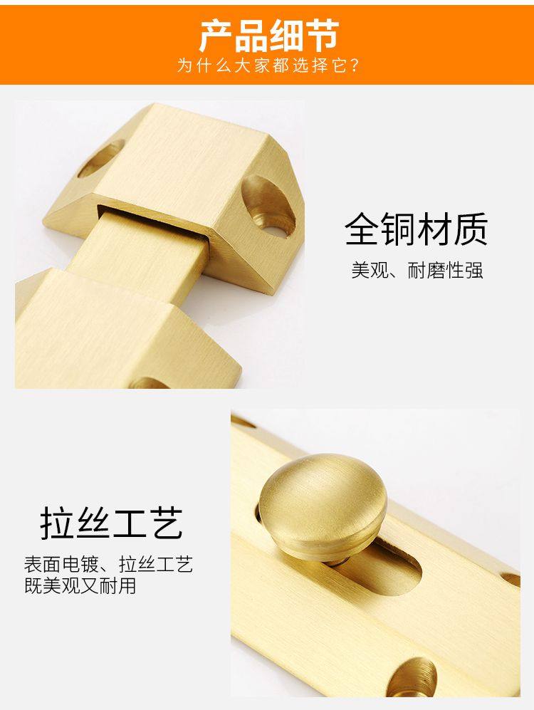 Pure Copper Solid Bolt Indoor Door Buttoned Door Bolt Bathroom Door Lock Snap Door Old-style Menswear Door Latch Bolt Bolt