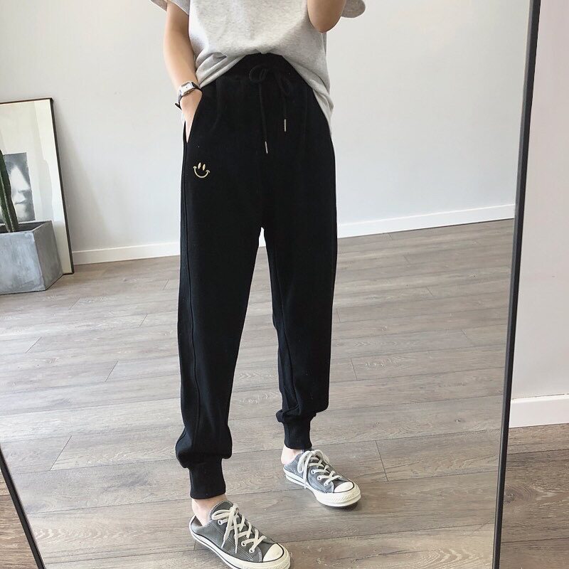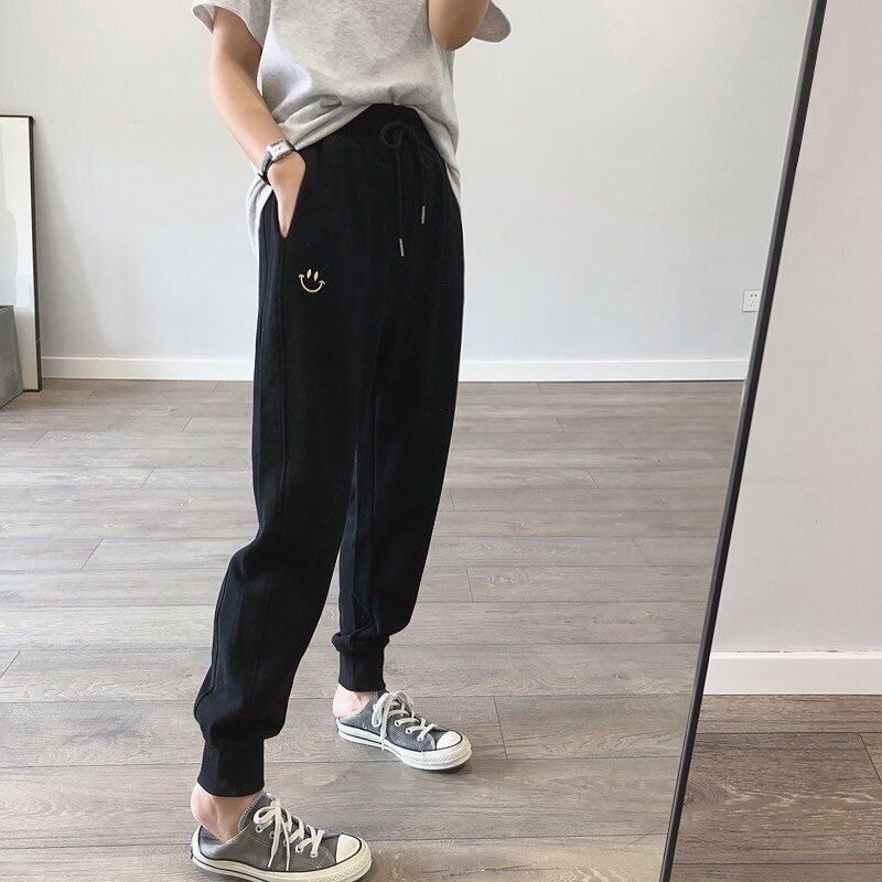 Japan SLY smiling face embroidered sports pants female bunches 2021 Summer thin Harun casual thick cotton pants Chauffo
