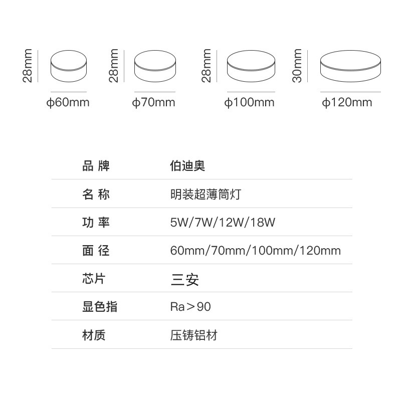 Glacier white-diameter 7cm-7w- warm light 3000k glacier white-diameter 12cm-18w- neutral light 4000k glacier white-diameter 10cm-12w -