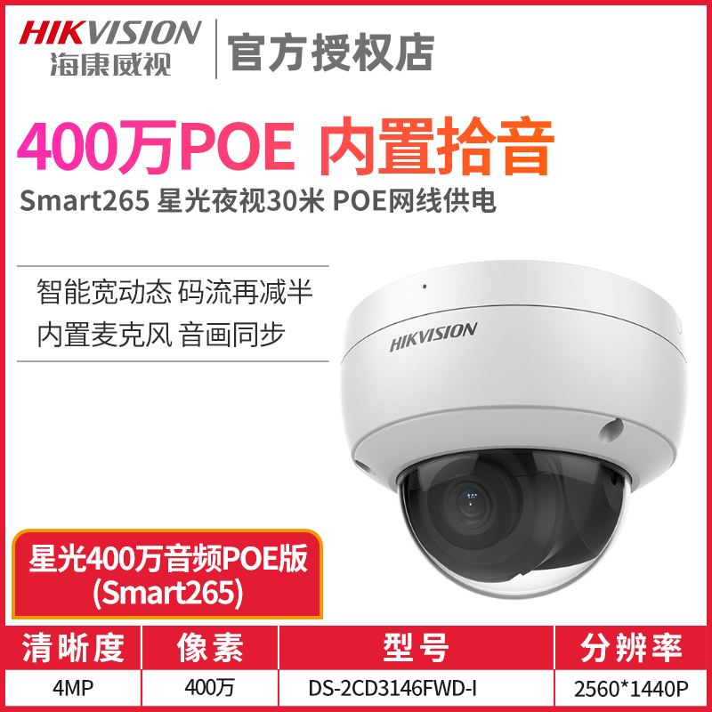 Hikvision 4 million anti-riot dome camera camera recording POE glass cover monitor 3146FWD