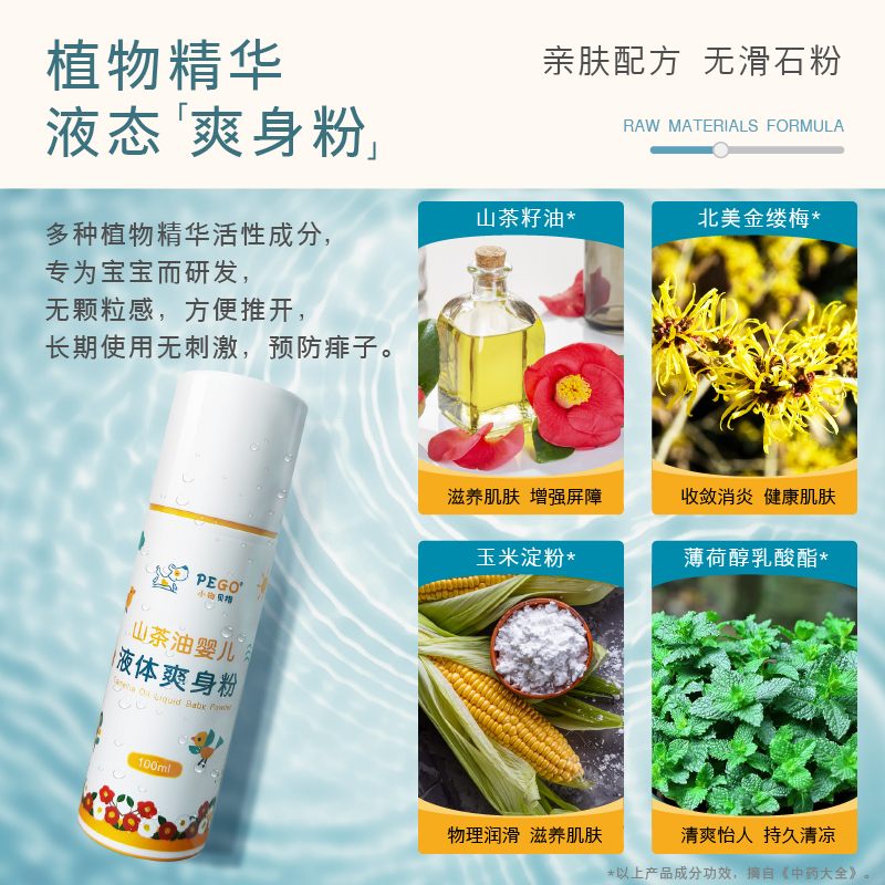 Puppy Berg, honeysuckle, camellia oil, two bottles of liquid talcum powder