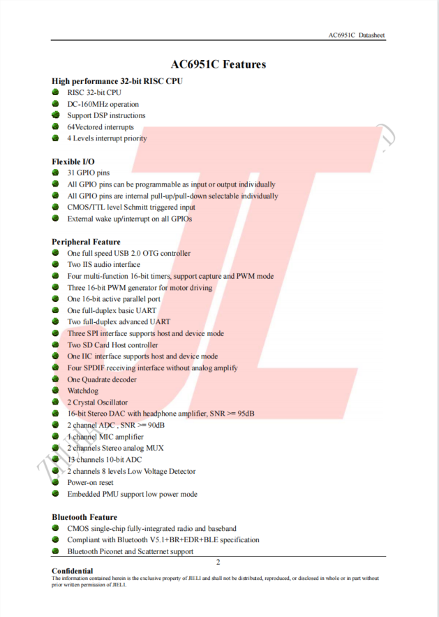 JL Jarie AC6951C 32bit RISC Full function Low power consumption TWS Bluetooth speaker chip scheme Custom