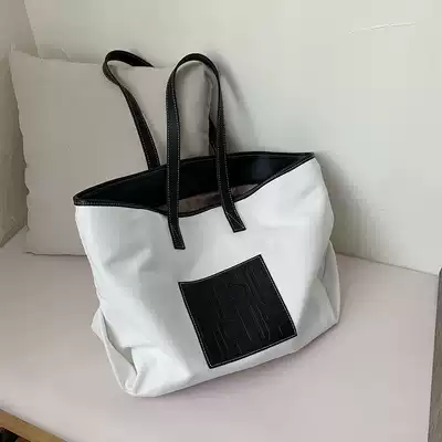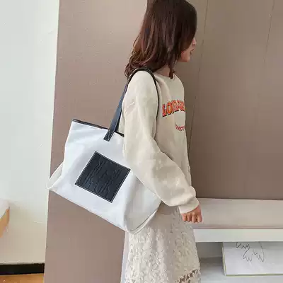 Hong Kong trendy brand net red simple big bag female 2021 new large-capacity fashion canvas portable totter shoulder bag