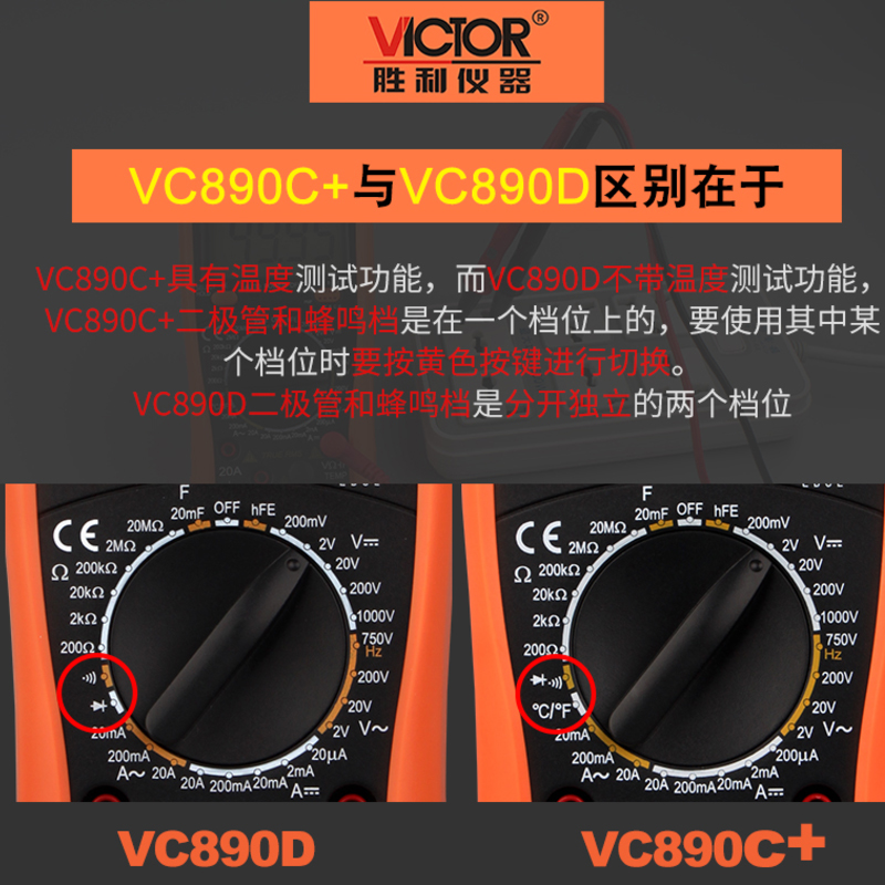 VC890D (cannot measure temperature) VC890C (can measure temperature)