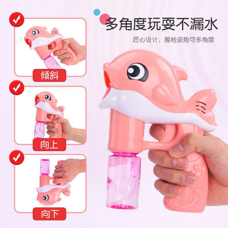 Child Dolphin Bubble Gun Toy Blow Bubble Mesh Red Shake Sound Same-Style Bubble Machine Teen Heart Fully Automatic Does Not Leak